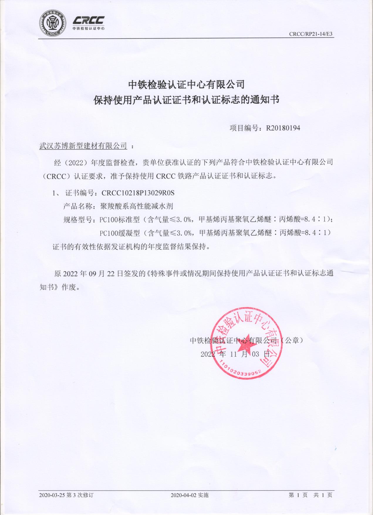 因廠區進行場地平整和環境優化工作,我公司于2024 年 9 月 27 日向中鐵檢驗認證中心有限公司(CRCC)申請暫停 CRCC 認證證書
